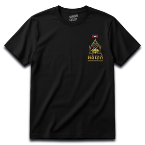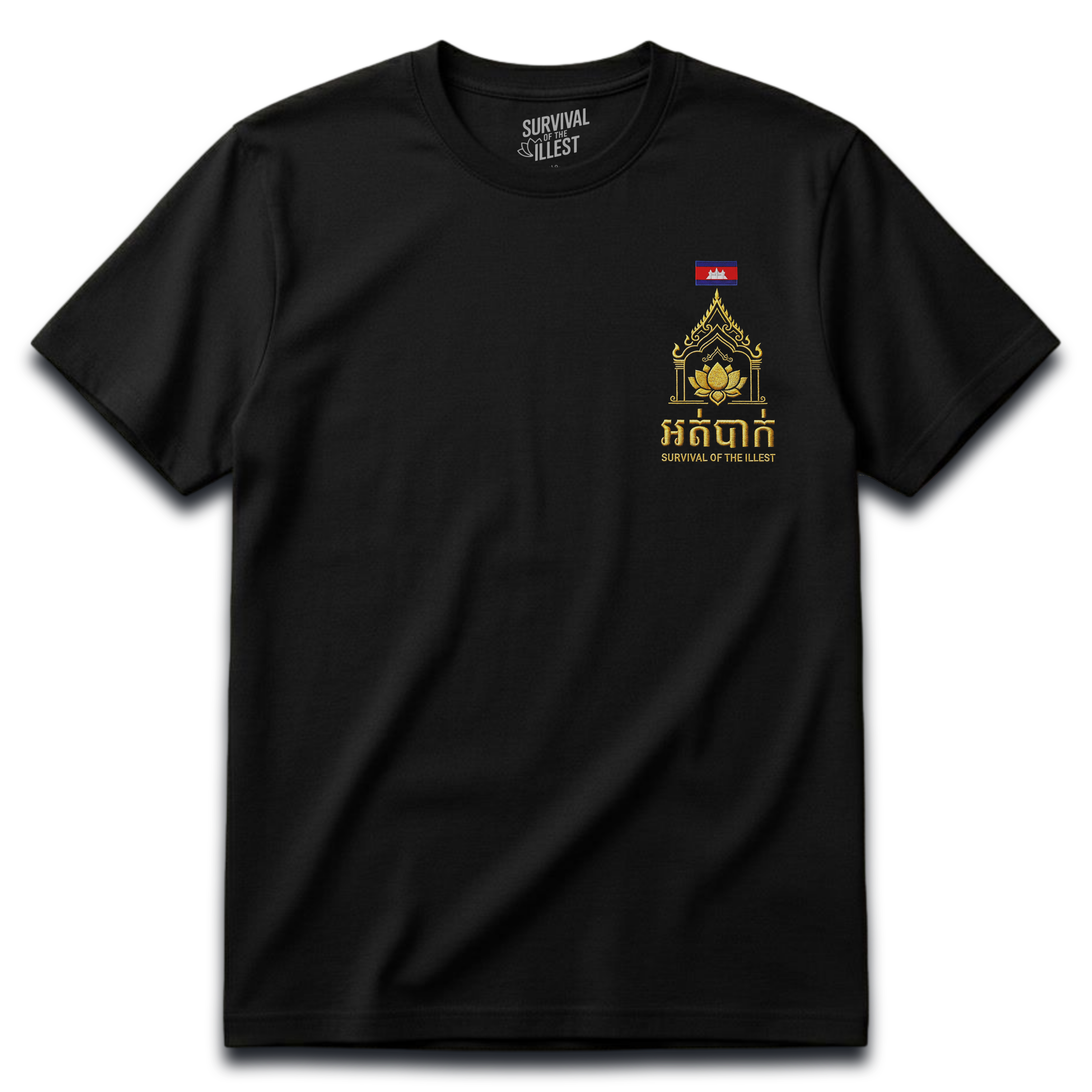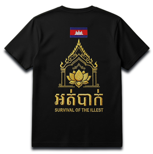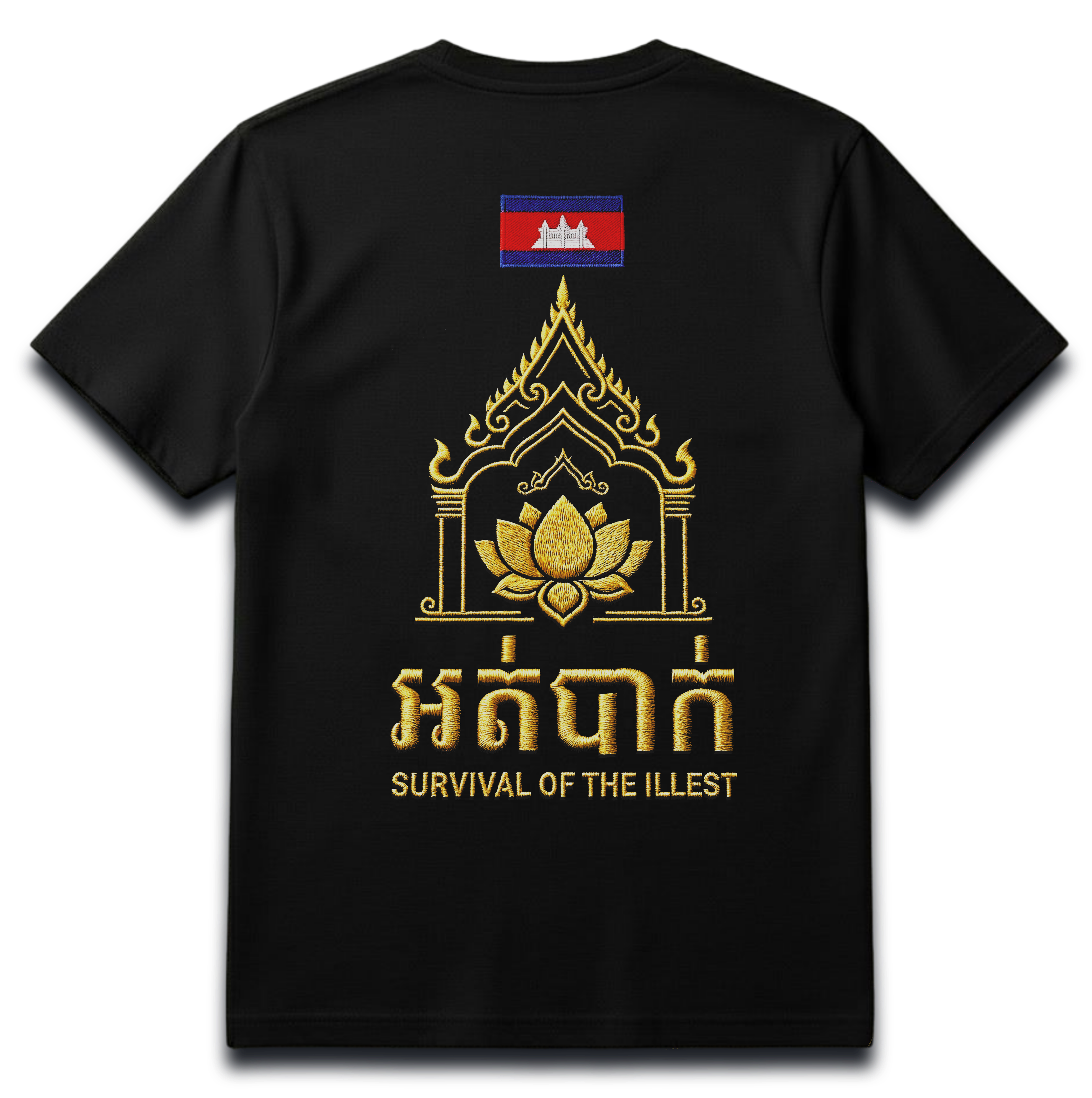 Cambodian t-shirt, Khmer shirt, sacred lotus shirt, Cambodian streetwear, Khmer heritage clothing, Southeast Asian fashion, gold crest t-shirt, Survival of the Illest